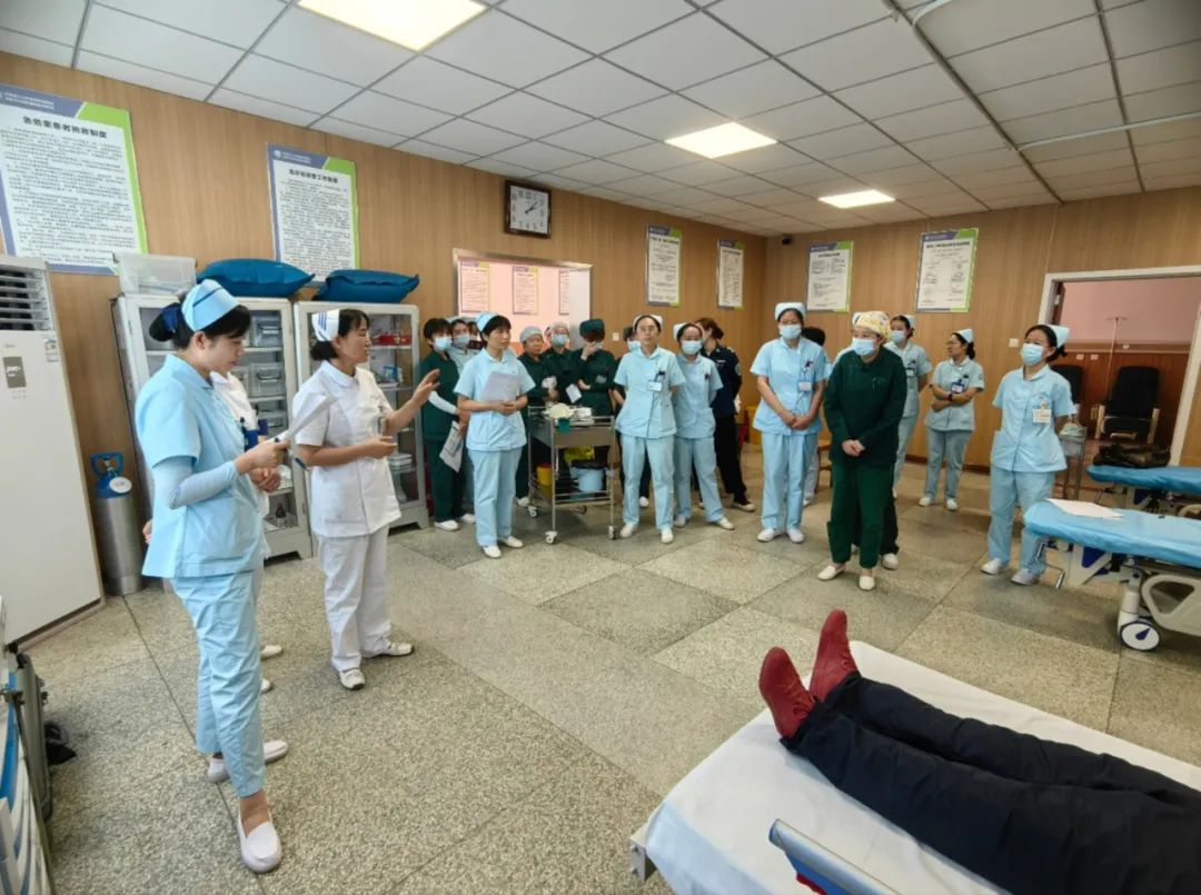 2025年6月,肿瘤医院护理部组织全院各护理单元的护理骨干在东方肿瘤医院急诊病区进行操作培训及考核。