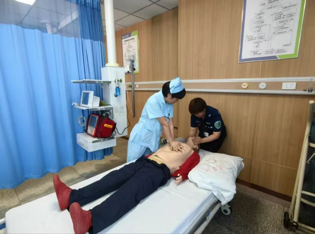 培训坚持由双人CPR操作,严格做好心肺复苏的反复强化按压深度与频率,细致把控面罩球囊的精准给氧,在双人密切配合下,确保心脏骤停患者在转运或跌倒后意外中可以尽可能赢得黄金抢救时间。