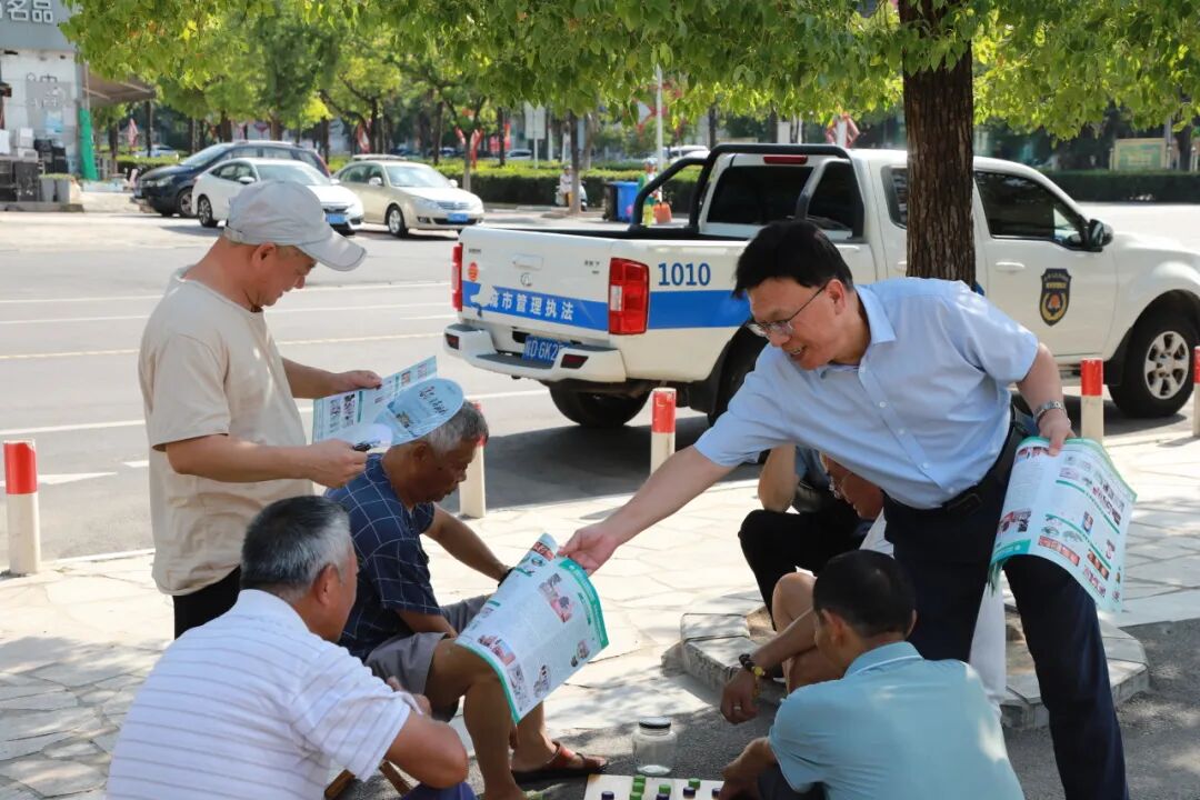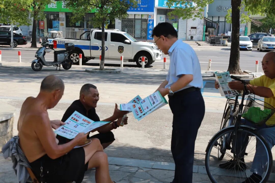 谢德明书记带头,头顶烈日为周边居民派发健康折页,介绍相关健康知识。