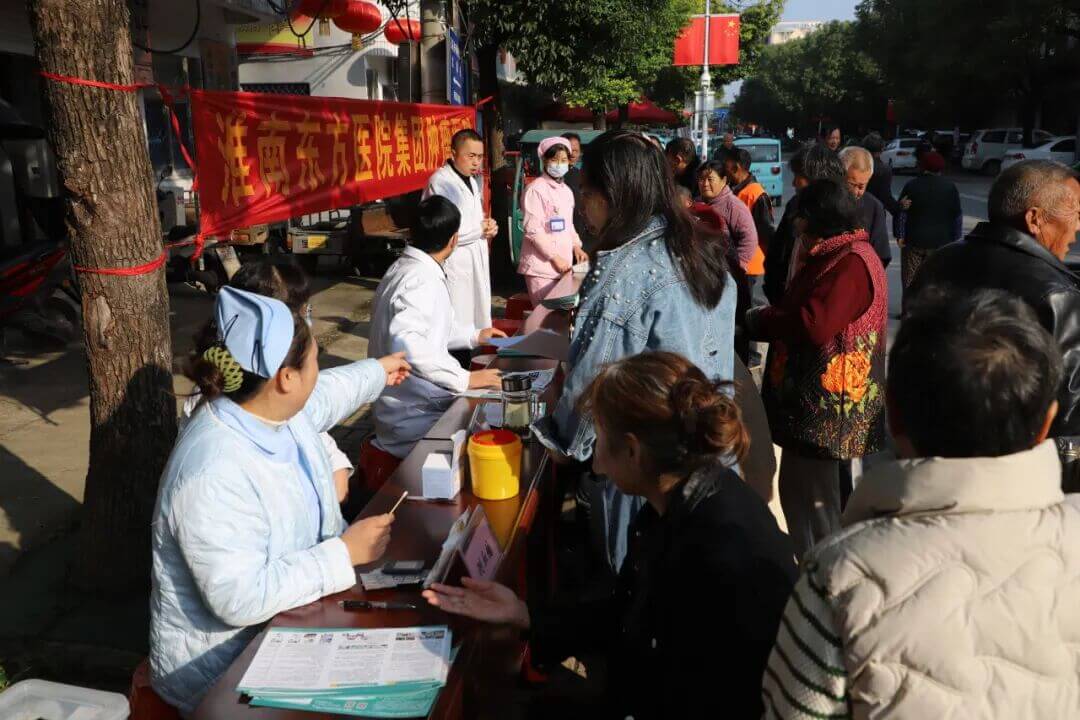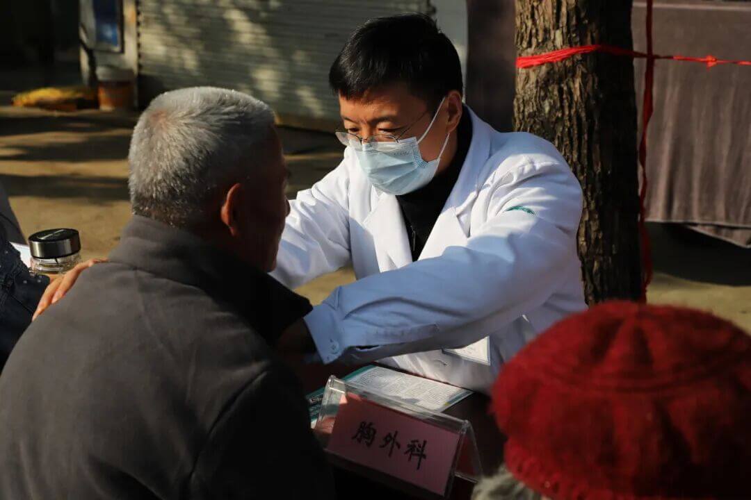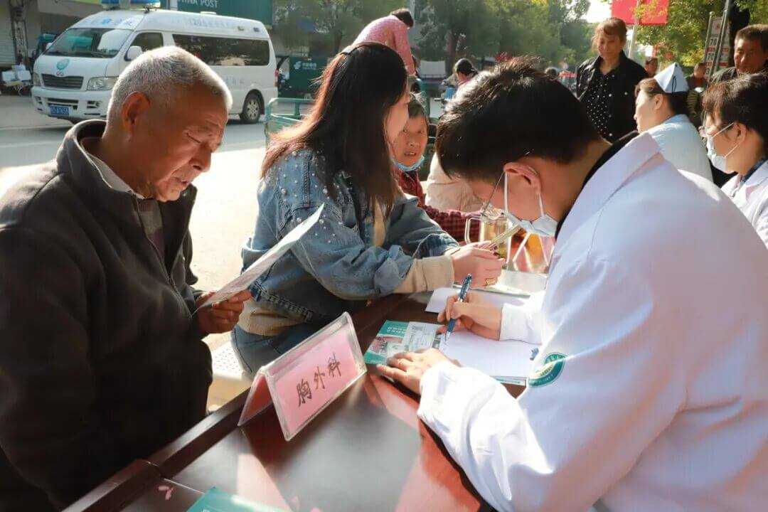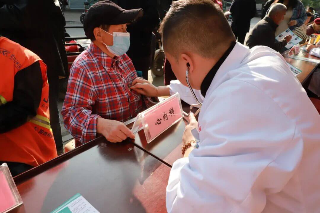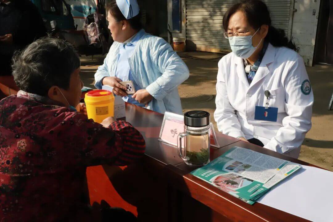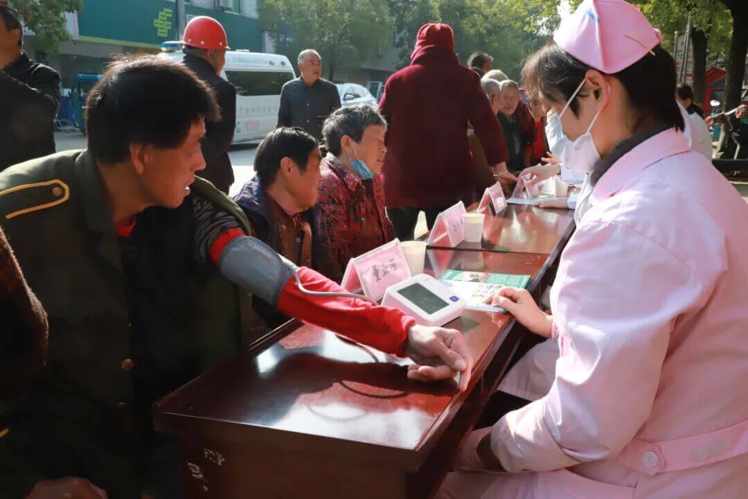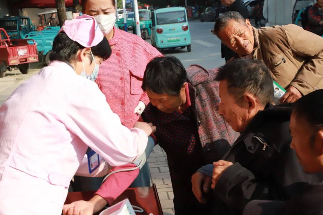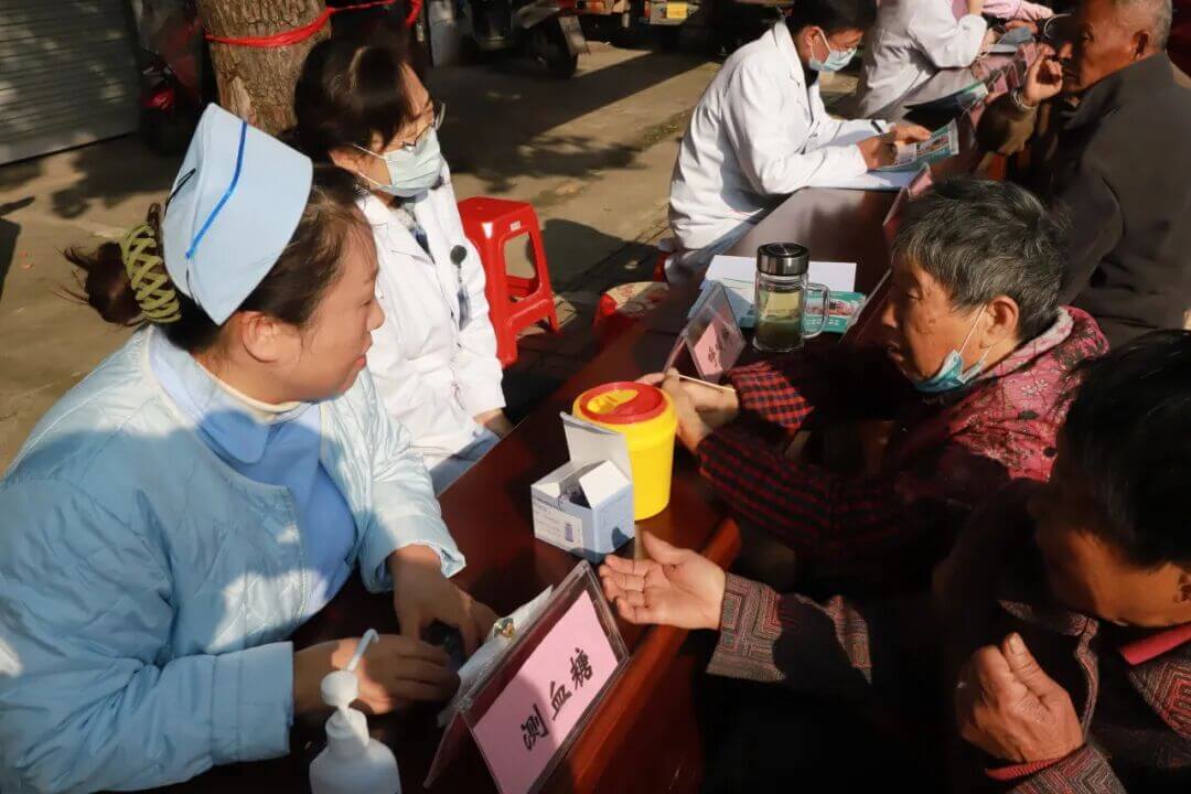 除了专家问诊,义诊现场还设置了免费的血糖、血压检测点。医护人员熟练地为村民们进行检测,并即时告知结果,对指标异常的居民给予个性化的健康指导和就医提醒。