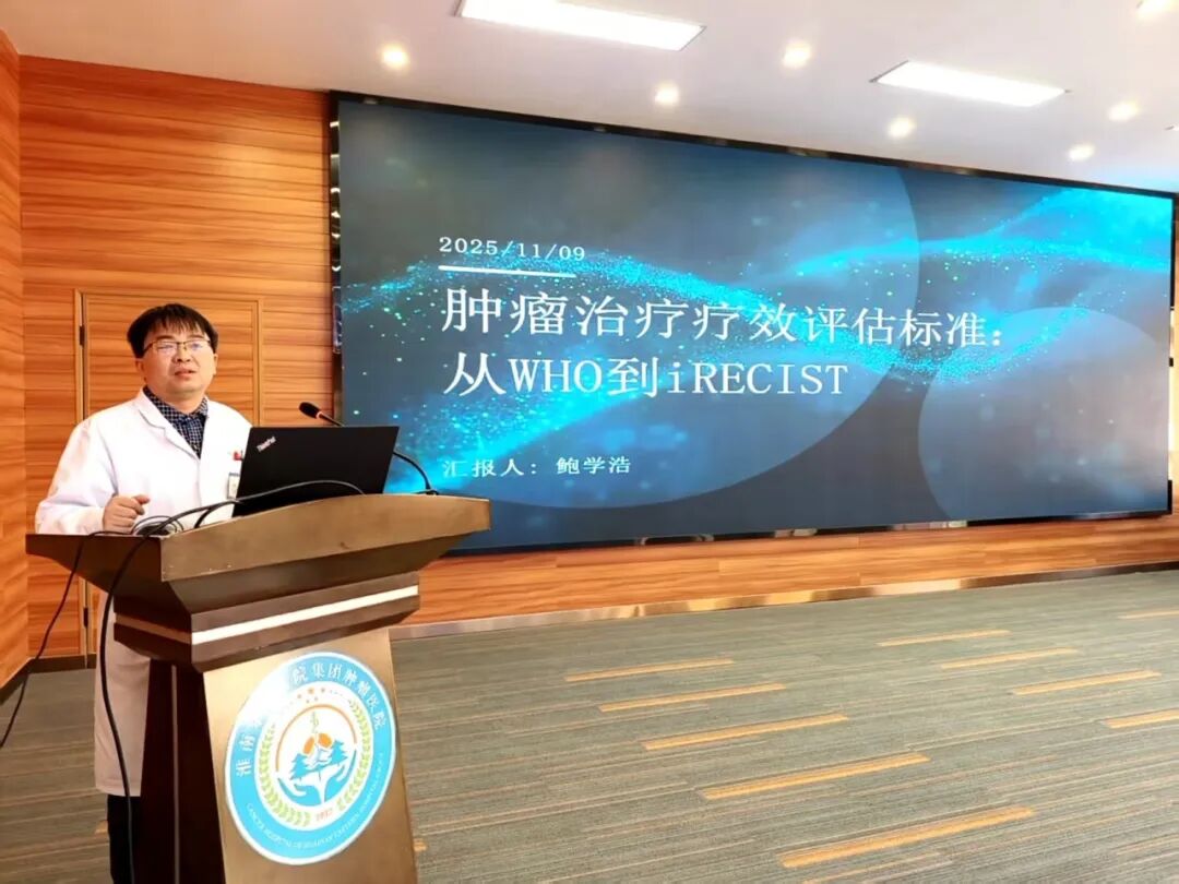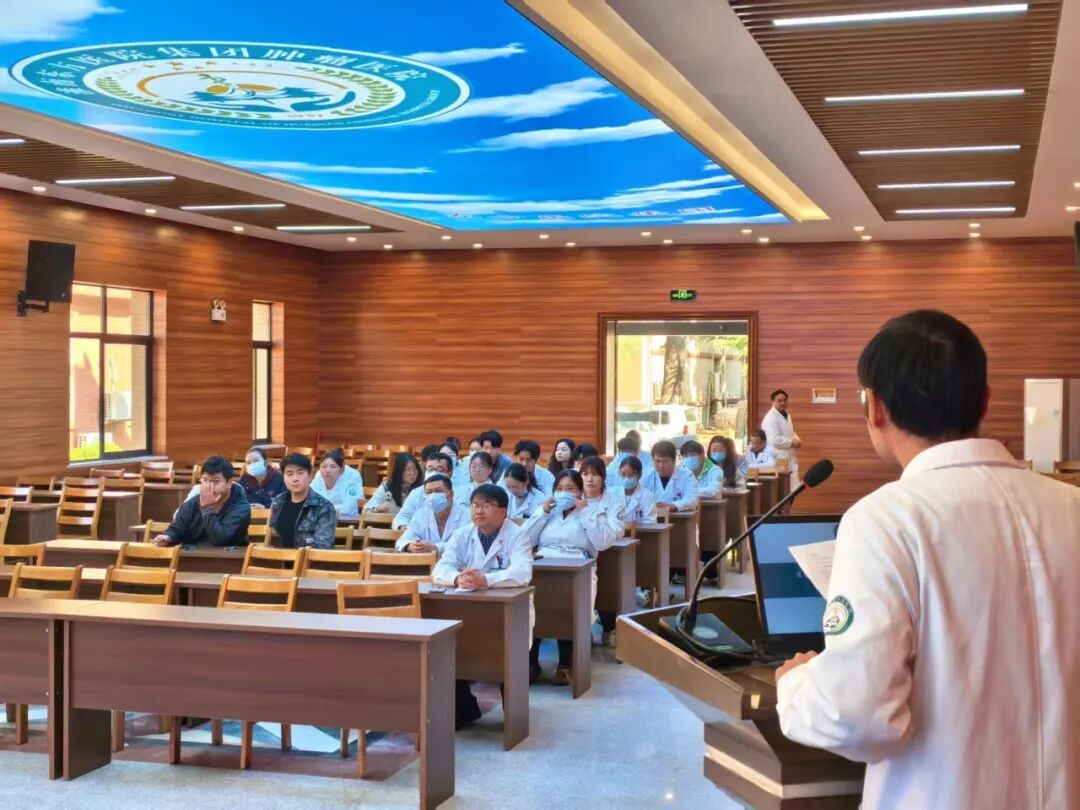 随后,培训会开始,肿瘤二病区鲍学浩主任为年轻医师们开展《肿瘤治疗疗效评估标准:从WHO到iRECIST》,微创介入科陈贤明老师为年轻医师们开展了《常见肿瘤急症及并发症》的培训。