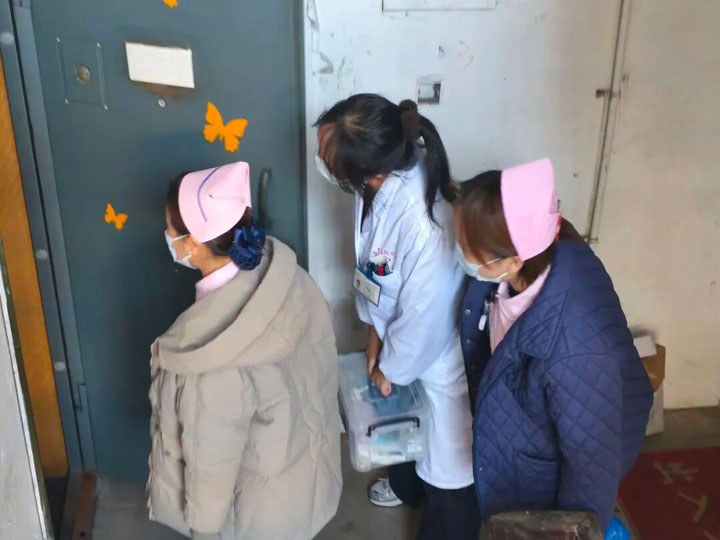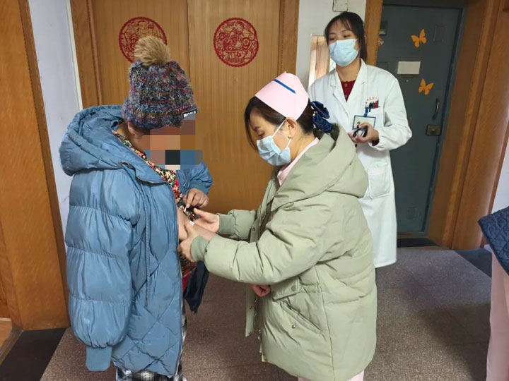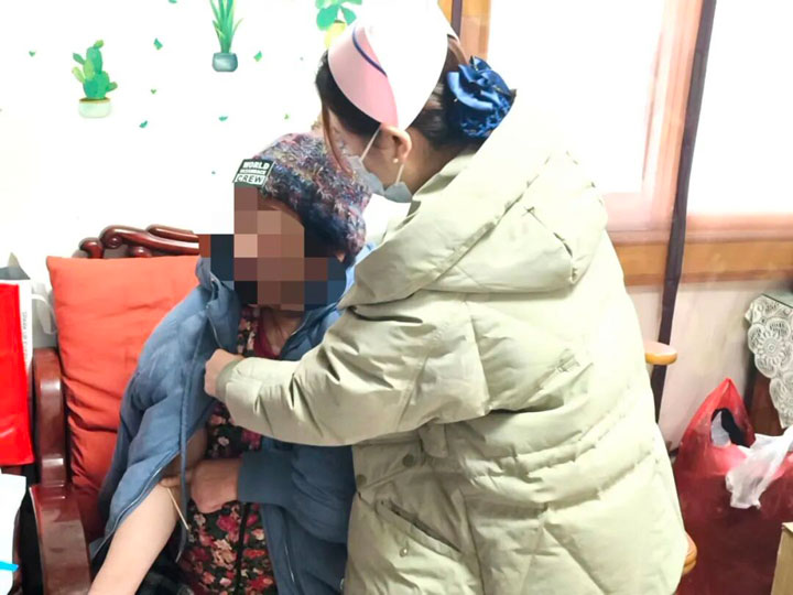 在院对外联络部顾勇部长的支持下,乳腺癌肾内病区徐宁宁护士长提前与患者约定好时间,1月7日上午,医护团队携带诊疗用品,准时抵达汤女士家中。