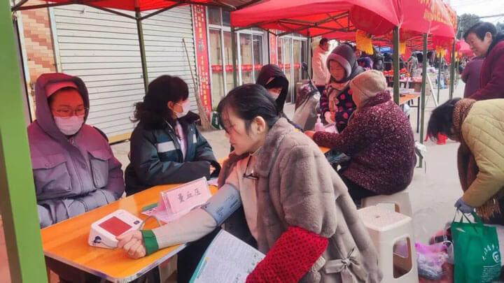 免费的血糖、血压检测服务一如既往地受到欢迎。医护人员认真测量、记录,并及时对数值异常者进行健康提醒和就医指导,成为了村民了解自身基础健康状况的便捷“哨点”。