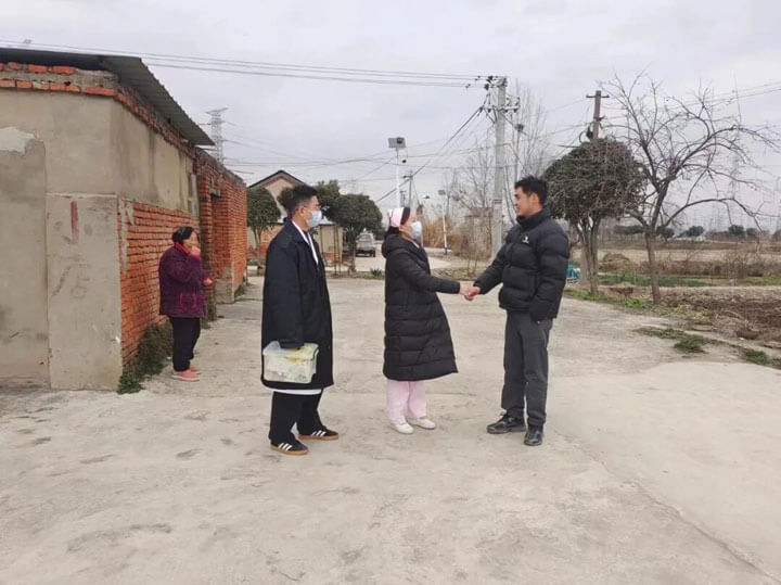 2月6日,受行动不便患者相邀,东方医院集团肿瘤医院普外科的医护人员带着相关医疗物品专程前往了淮南市大通区孔店乡大北郢村,为行动不便的患者提供上门更换置管及查体服务。