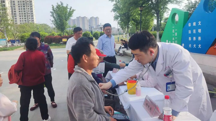 除了专业的健康咨询,义诊团队还免费为居民提供测量血压、血糖等服务,并发放健康宣传折页,开展形式多样的健康宣教。